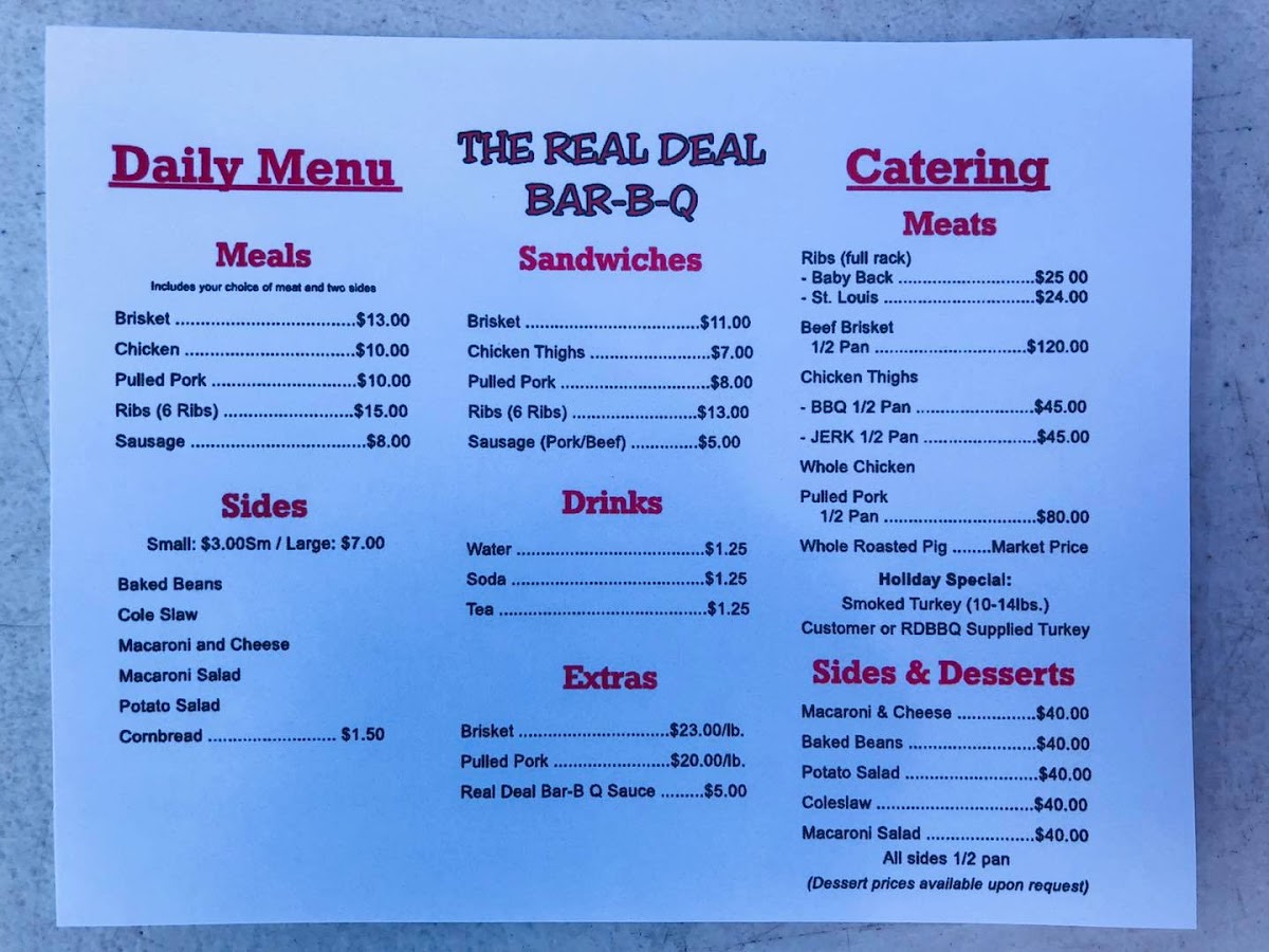 The Real Deal BBQ offers a straightforward, hearty menu built around classic barbecue favorites that invite relaxed, satisfying meals. This is the kind of place where you can settle in for casual lunches or laid-back dinners, enjoying dishes that bring a sense of comfort and familiarity.